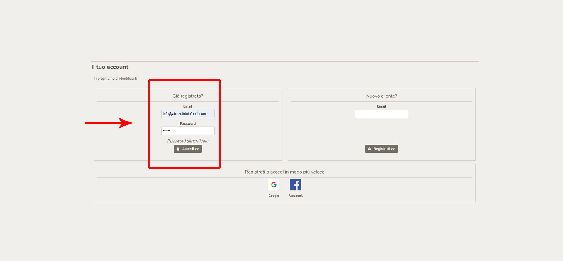 La prima cosa che deve fare è entrare nella nostra pagina Web con la sua E-mail e la sua password. In questo modo il nostro sistema la riconoscerà e saprà quanti punti ha a disposizione.