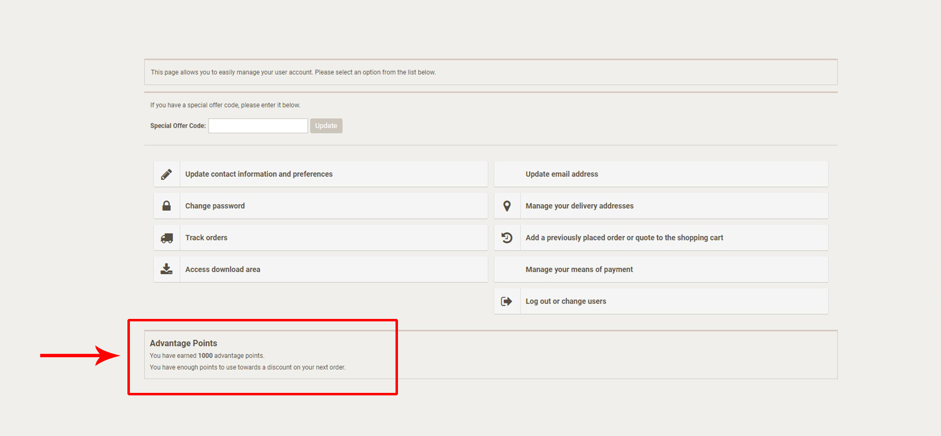 When you are already inside your customer account, you can see how many loyalty points you have available to use in your next purchase: